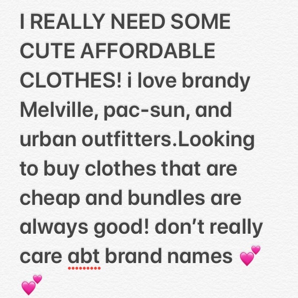 in desperate need of a wardrobe update! I love floral stuff, crop tops, and skirts. Love the style of brandy pacsun and urban outfitters. Will be buying clothes though put he summer! really like the clothes/outfits in the pics. Size 2-4 ๐ let me know if you see a closet u junk i might like! thanks babes!