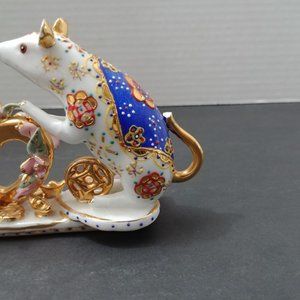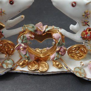 It kind of reminds me of Herend. A company out of Hungary. If it is it's an older piece. The newer ones go for $350 - $750 And that's with a single animal.
