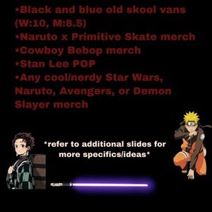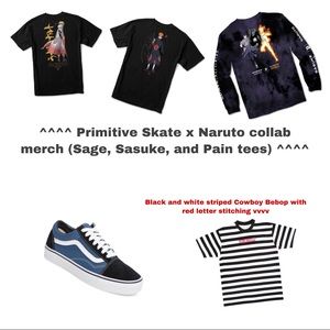 I’m in desperate need for the items listed above. My priorities are Cowboy Bebop and Naturo x Primitive Skate Collab. I’m pretty desperate and willing to make offers for these items, especially for the 5 in the last slide. If you or anyone you know that is selling these items, leave me a comment and I will back to you. Thank you!!!