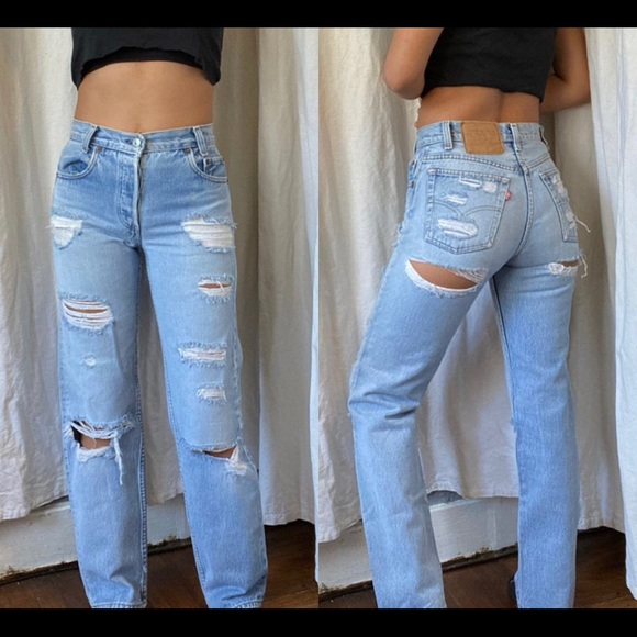 ISO vintage levi’s with this type of distressing! distressing on the lower butt & distressing on the front. these are all from denim heaven co but they don’t restock the online store very frequent, making it harder to find what I love.
