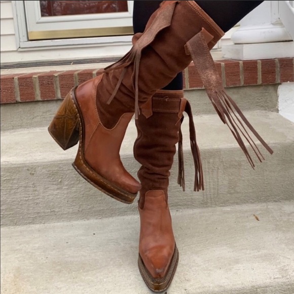 Tags: western cowgirl cowboy brown leather suede tall boots