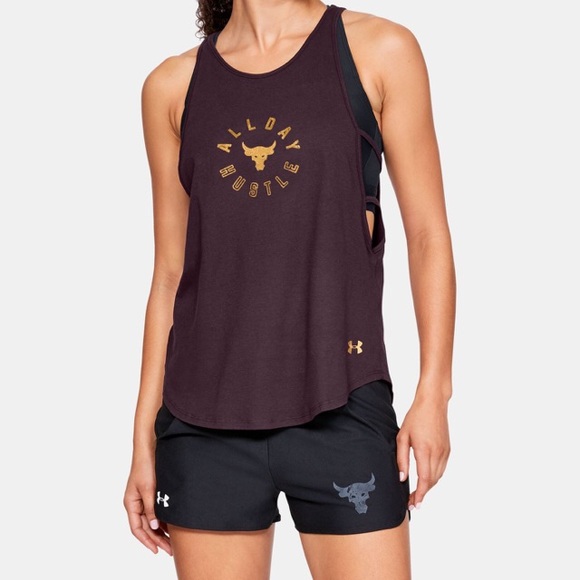 UA x project rock All Day Hustle Strappy tank color: maroon size: medium