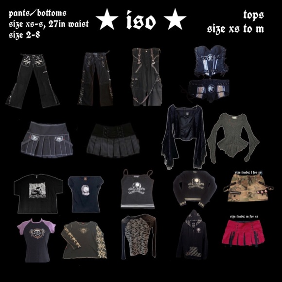 all the sizes i’m looking for are listed in the photos 🖤
