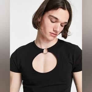 ASOS men's cut out/window black shirt with o ring in sizes M and up
