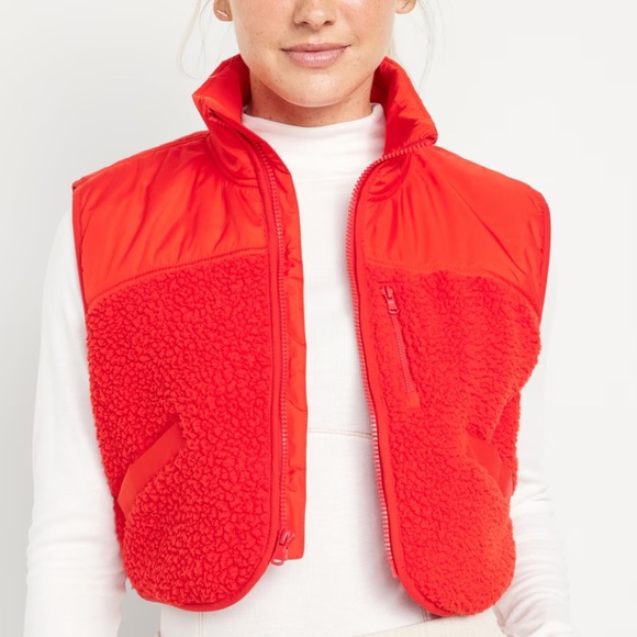 On the hunt for old navy fireside crop hybrid vest fleece