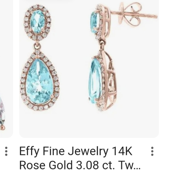 Effy Rose Gold tear drop Aquamarine and diamond earrings.