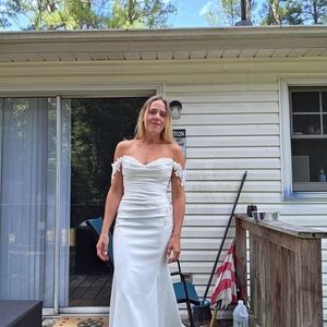 I am looking for a dress just like this one or very very similar, no slit. Ivory please.