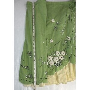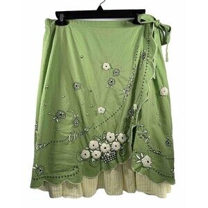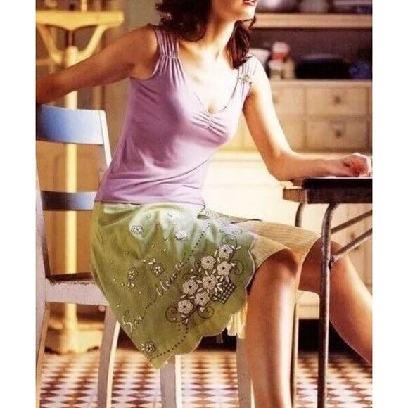 ISO Anthropologie Odille Green Italia Embroidered Faux Wrap Apron Skirt 2005