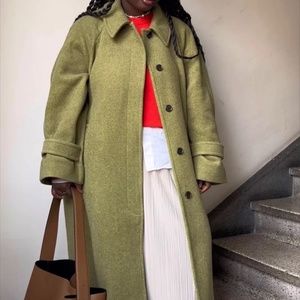 ISO: COS Tailored Herringbone Coat / Olive Khaki Green Trench Wool
