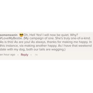 @somemeanin hmm girl. I need you. We are a team. You are the glue that keeps our sign standing UP tall. You are loyal, constant and reliable. I can count on you. Plus you are tons of fun. And clever. And smart. And lovable❤️