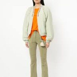 ISO Hyein Seo Green Jewel Embellished Beaded Silk Bomber Jacket (do not buy)