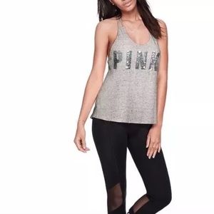 i found the gray with bling and white with bling. the gray with bling has just PINK written on it. the white one as well but doesn't have the black lining on side. white is racerback with mesh in the back. let me know if u want them