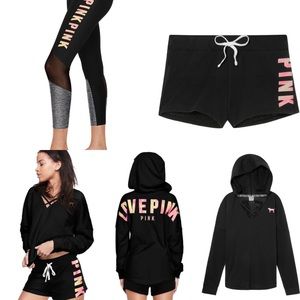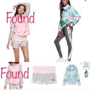 🌸 pink crossover hoodie XS the cool & comfy cutout tights in black size Medium the black front cross jersey in XS and matching shorts in M & the white & mint looking 1/4 zip in XS is my main search right now