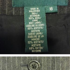 I am in search of size 14 or 16 matching pants (Lauren Ralph Lauren) to the suit jacket pictured above in solid and pin stripes. I'm not sure what season/collection/year the jacket came from. I think the fabric is called, "Dark Gents."