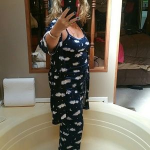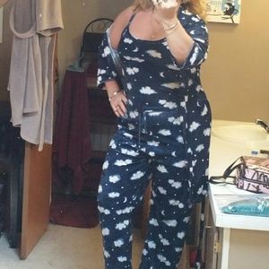 I'm searching for this velour / crushed velvet pajama set with a robe, camisole / tank top and pants. It has a cloud, moon, and star print or pattern. It reminds me of my childhood and I absolutely need it! I will pay you $30 for it in small or medium size.