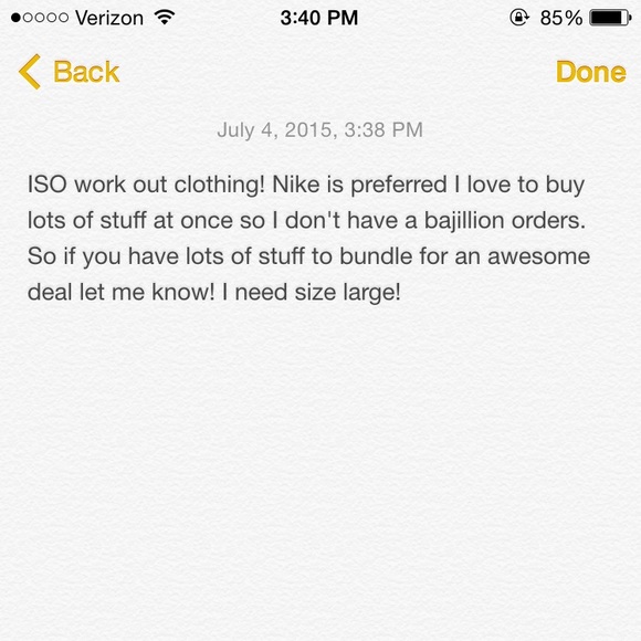 hi I have Nike crop leggings, Some workout shorts and also a couple workout shirts (not nike) ! if ur interested I can bundle for you :) check them out! let me know if u want me to tag u