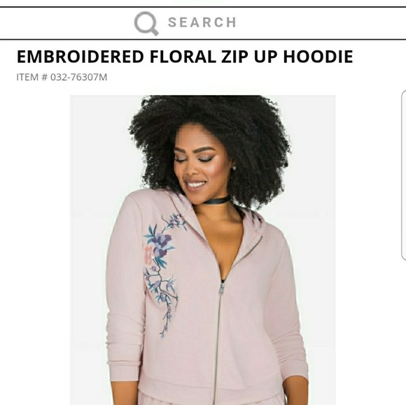Pink Embroidered Floral Zip Up Hoodie by Ashley Stewart