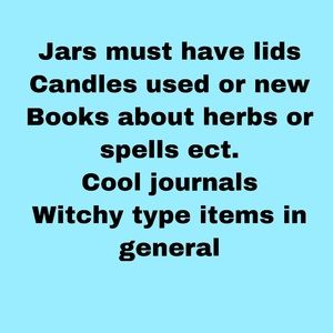 Is jewelry included as witchy items you're interested in? I have an inverted pentagram body chain from Blackheart, an all seeing eye type body chain from Blackheart, a glittery black coffin (single compartment clasp closure), a huge red mesh canopy for beds or cover an alter space, & a 3 piece set of mini bowls (perfect for the alter for herbs, mini floating candles, etc.). If interested I can post pics. 😊