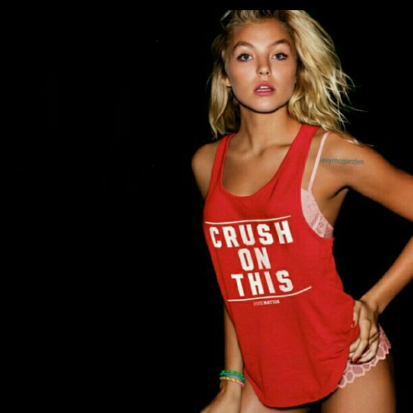 i have the same style, but different colored graphic top. it says "oh kale no"