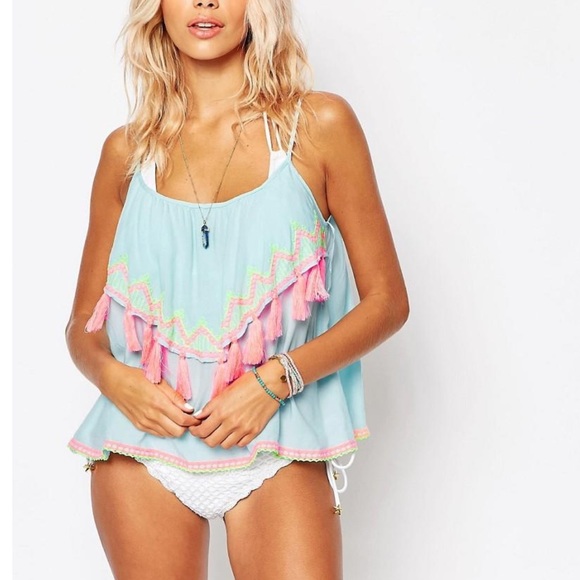 ISO Surf Gypsy Bubble Neon Tassel Trim Beach Tank