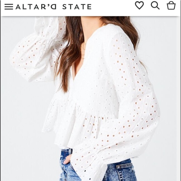 I know it’s not this top, but if your like this style top you might like Free People’s ‘circle sleeve eyelet jacket’🤷🏻♀️