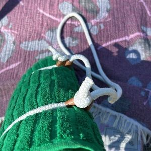 See photos (thank you ANDREA !) with the extras being made into long ropes to be worked with. I like that they are extras upcycled. They are going to be used in other ways but a bit too bulking for this project.