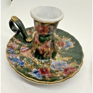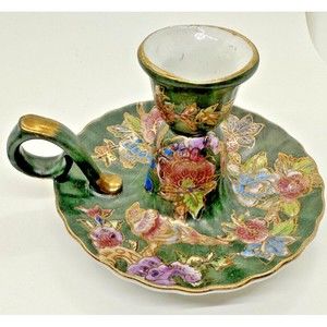 ISO Vintage Fitz And Floyd Green Birds and Flowers Hand Painted Candle Holders