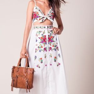 ISO embroidered cropped cami and maxi skirt set