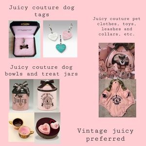 Vintage preferred! In search of any juicy couture pet items including clothes, beds, treat jars, dog tags, plates, etc.