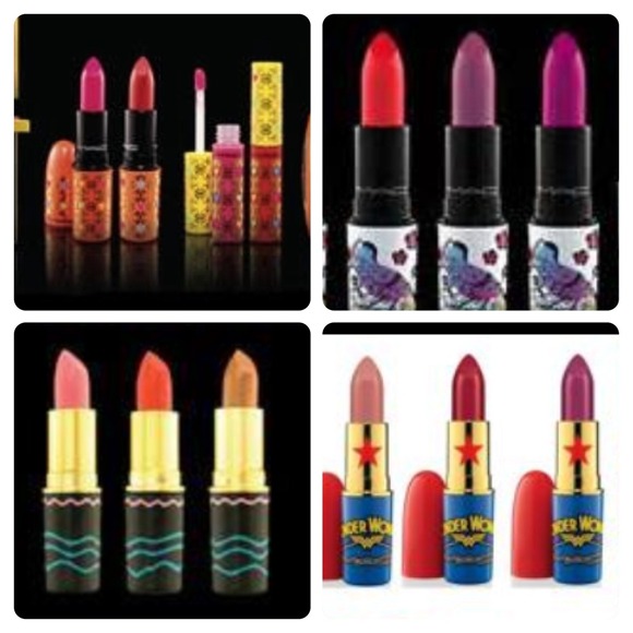 Wonder Woman spit fire and Russian red, liberty of London petals & peacocks and ever hip, manish aurora girl about town and kiss manish, and zandra all 3 lippies.