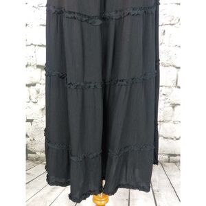ISOLA BELLA Tiered Babydoll A-Line Boho Gauzy Beach Dress Black Coastal Medium