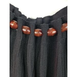 Black A-Line tiered dress with beads at neckline. Adjustable straps. Lined. Pullover styling. The area with the beads is stretchy.