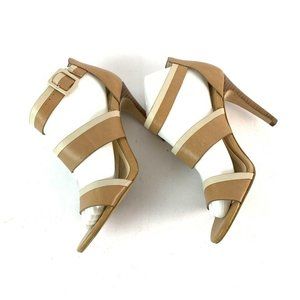 🟣 ISOLA Women's Size 8 Beige Brown Strappy Ankle Buckle Open Toe Heeled Sandals