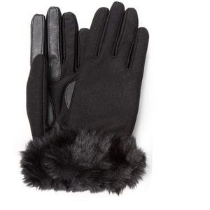 Dress gloves are done on woven wool tops, signature stretch fabric on the palms and finished with faux fur cuffs Features smarTouch technology which is conductive thread embroidered on the fingers and thumbs that works seamlessly with touchscreen devices.