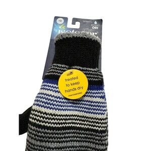 ISOTONER Ladies Knit Winter Mitten Gloves Black & Blue Stripes Smart Dri 1 Sz