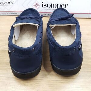 ISOTONER Mens Slippers Size 11 12 Blue Slip On Microsuede Plush Comfort Cozy
