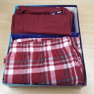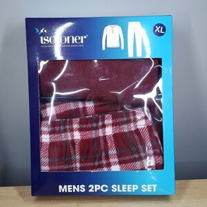 ISOTONER Sleepwear Mens XL Red Plaid Pajama Set PJs Fleece Bottom Henley Shirt