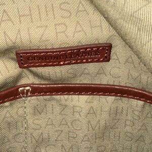 ISSAC MIZRAHI RED AND BROWN BRIDGEHAMPTON TOTE PAINTED CANVAS TOTE