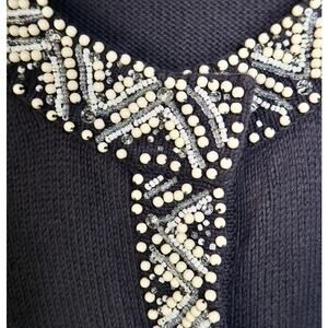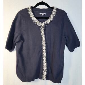 ISSAC MIZRAHI Navy Blue Snap Button Beaded Cardigan Sweater XL