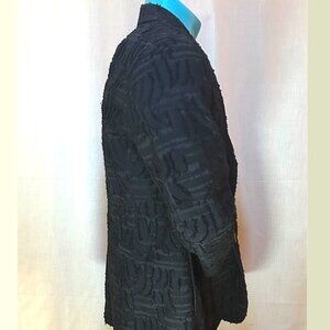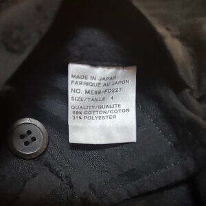 ISSEY MIYAKE MEN, Made in Japan, 2 buttons, color black, size 4 - "L", maybe worn once. 69% Cotton, 31% Polyester. 2 Side pockets, One chest pocket and 1 inside pocket.