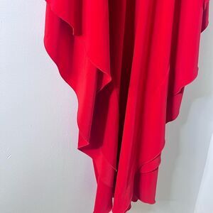 ISSUE New York Red Deep V-Neck Sheath Maxi Dress Sz L Elegant Flowy Boho Chic. Stunning red gown with a deep V-neckline. Features flowing draped sleeves for a dramatic look.