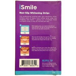 Remove stains with iSmile extra strength teeth whitening strips containing enamel-safe hydrogen peroxide and natural stain removing oils, allowing you to whiten while enjoying a delicious flavor from mint oil, included in each strip. These professional, non-slip, enamel-safe, zero sensitivity strips, remove years of stains from coffee, wine, soda, tea, smoking, and more — giving you a brighter, more confident smile, in only 30 minutes per day!