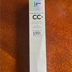 Experience full coverage with IT Cosmetics CC+ Cream. Provides anti-aging hydration and SPF 50+ protection. Ideal for a flawless finish.