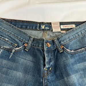 !IT Distressed Denim Button Fly Sweetie Capris- Size 29