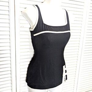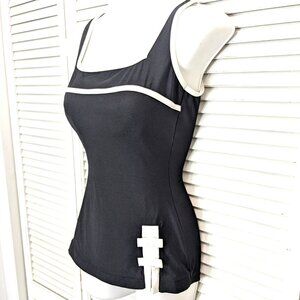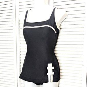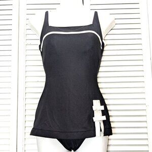 IT FIGURES Vintage 80s Black Swimsuit Dress One Piece Modest Elegant Size 10