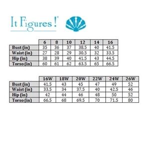 It Figures! was a brand designed for the modern woman with a real figure. All swimsuits begin with fabric that comfortably smoothes curves and whittles the midsection with Tummy Thinner® technology. Then, It Figures! addresses more specific needs of each common body type with 1 of 4 hangtags that concisely convey the purpose of each suit to enhance and flatter the figure.