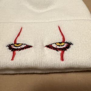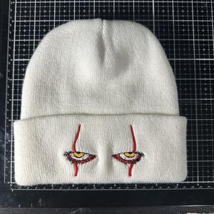 IT Pennywise Embroidered Knitted Cuffed Beanie Scary Clown Eyes Stephen King's