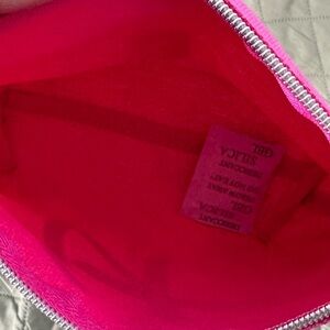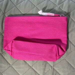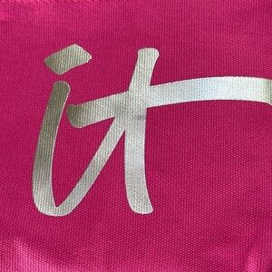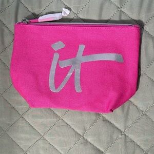 IT cosmetics new makeup bag pink with silver metallic lettering Zip Close