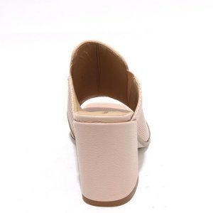 ITALIAN Beige Leather Slide Open Toe Heel Sandal