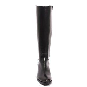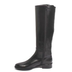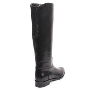 ITALIAN Black Leather Stretch Zip Knee High Boots
